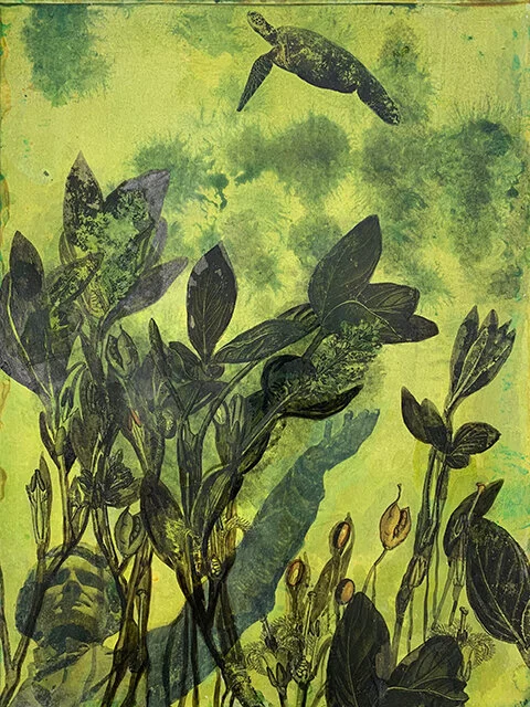In my artwork I have often made a space for grieving what is disappearing from this earth due to climate change. Paradoxically, in the series, Swamp/Garden, I called attention to ideas of white supremacy, stubbornly undead, even though we bury them. In those underwater paintings with Confederate monuments, guns and junk, the swamp is an imaginary place where unwanted, shameful things are pushed out of view, with luxuriant flora and fauna telling the opposite story, of an ecosystem that feeds on and gives life.